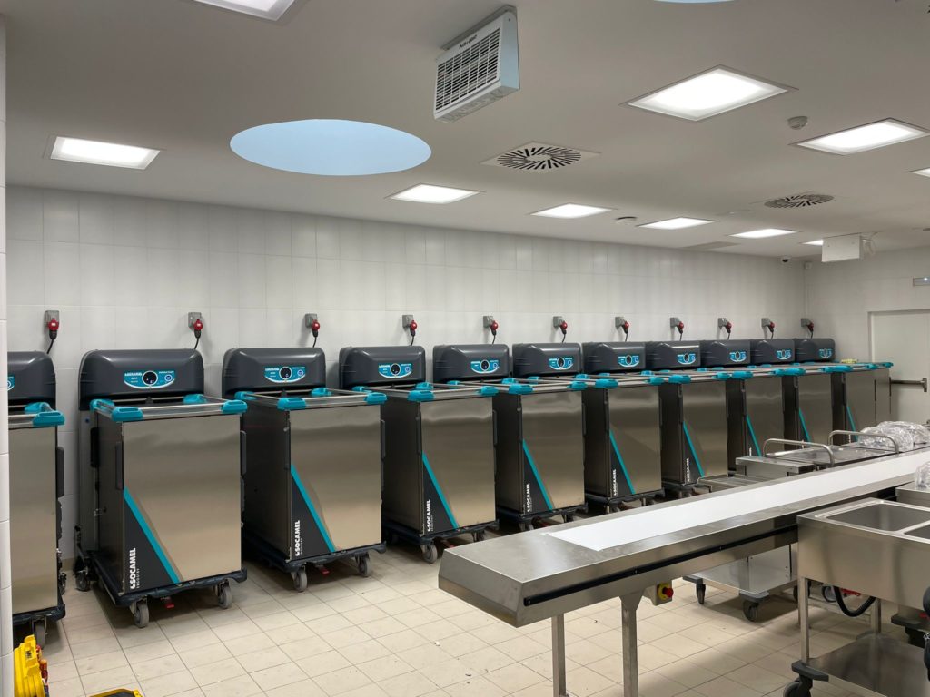 Début 2022, l’hôpital de Rostock s’est offert un nouveau système logistique de distribution de repas sur plateaux. Alors que leur service nécessitait auparavant 180 chariots froids et 110 chariots chauds, ce sont désormais 210 navettes et 70 bornes qui se chargent de la remise en température des repas. Une belle installation pour Socamel !